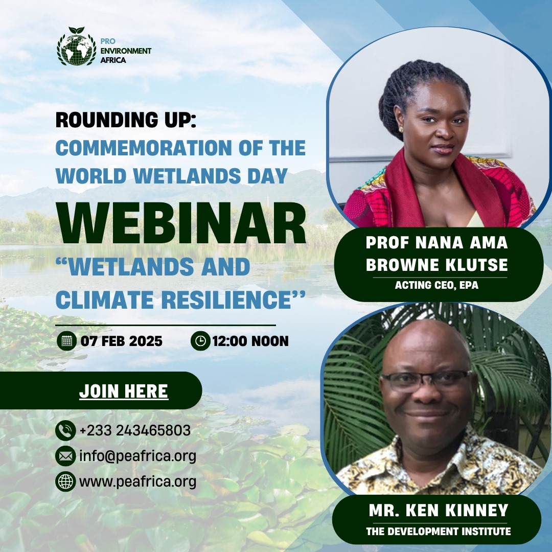 The Pro Environment Africa joined in the commemoration of the 2025 Wetlands Day and organized a Webinar on 7th February 2025 to discuss critical issues on wetlands and climate resilience.